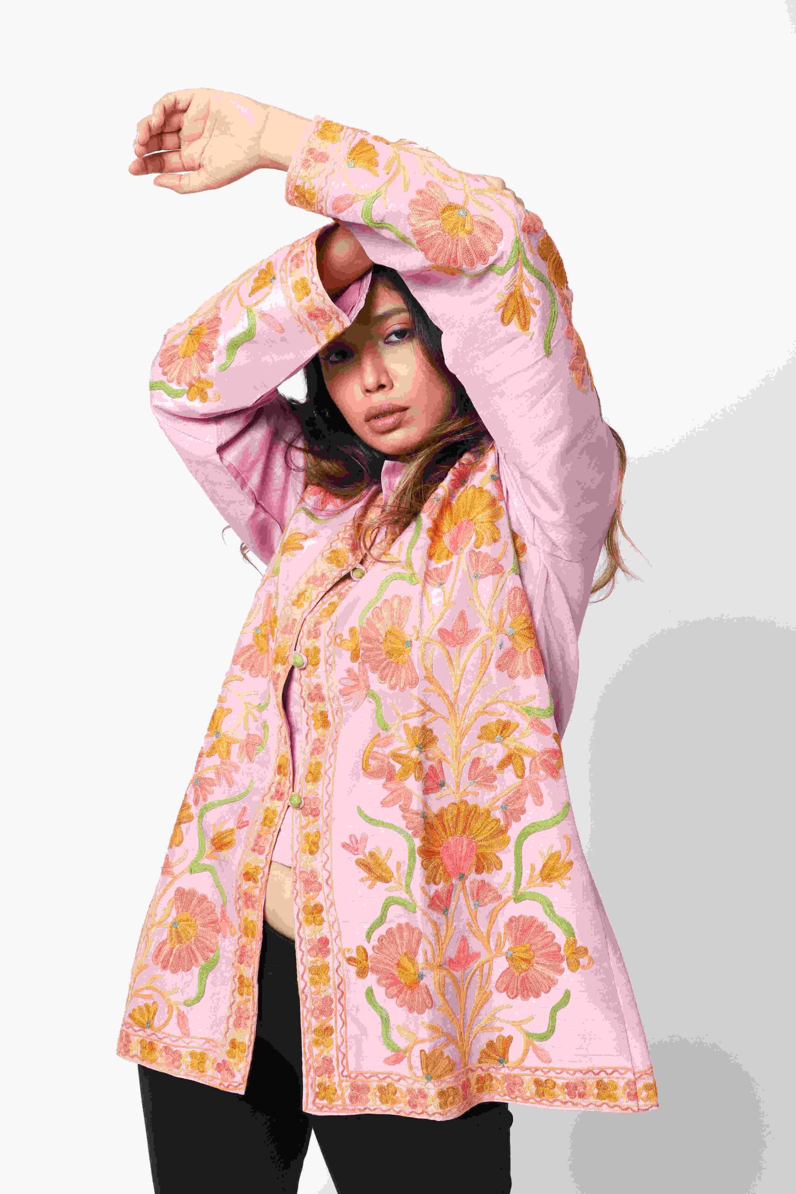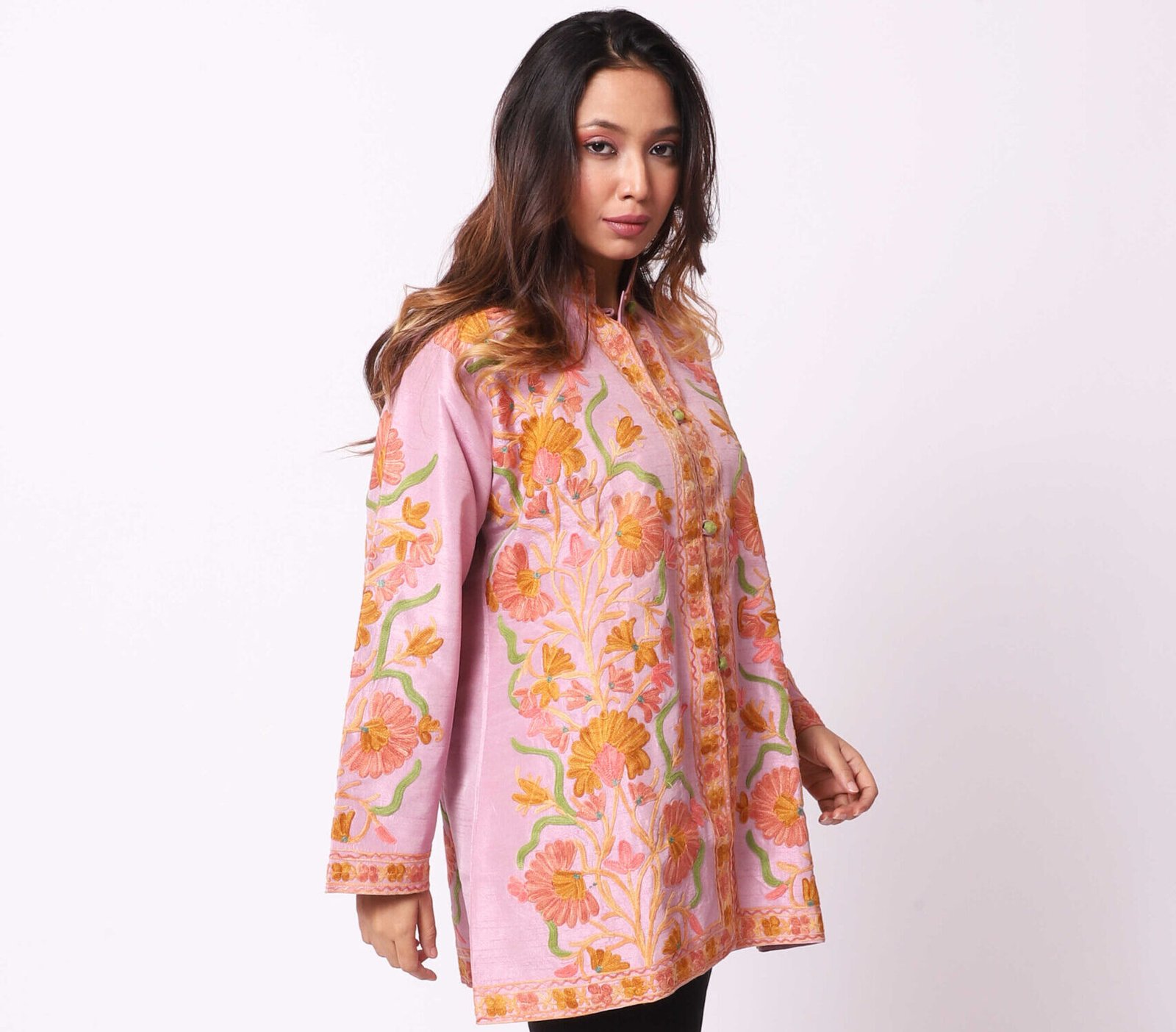 “Silk Jacket In Short Size Embrodried With Fine Aree Work.