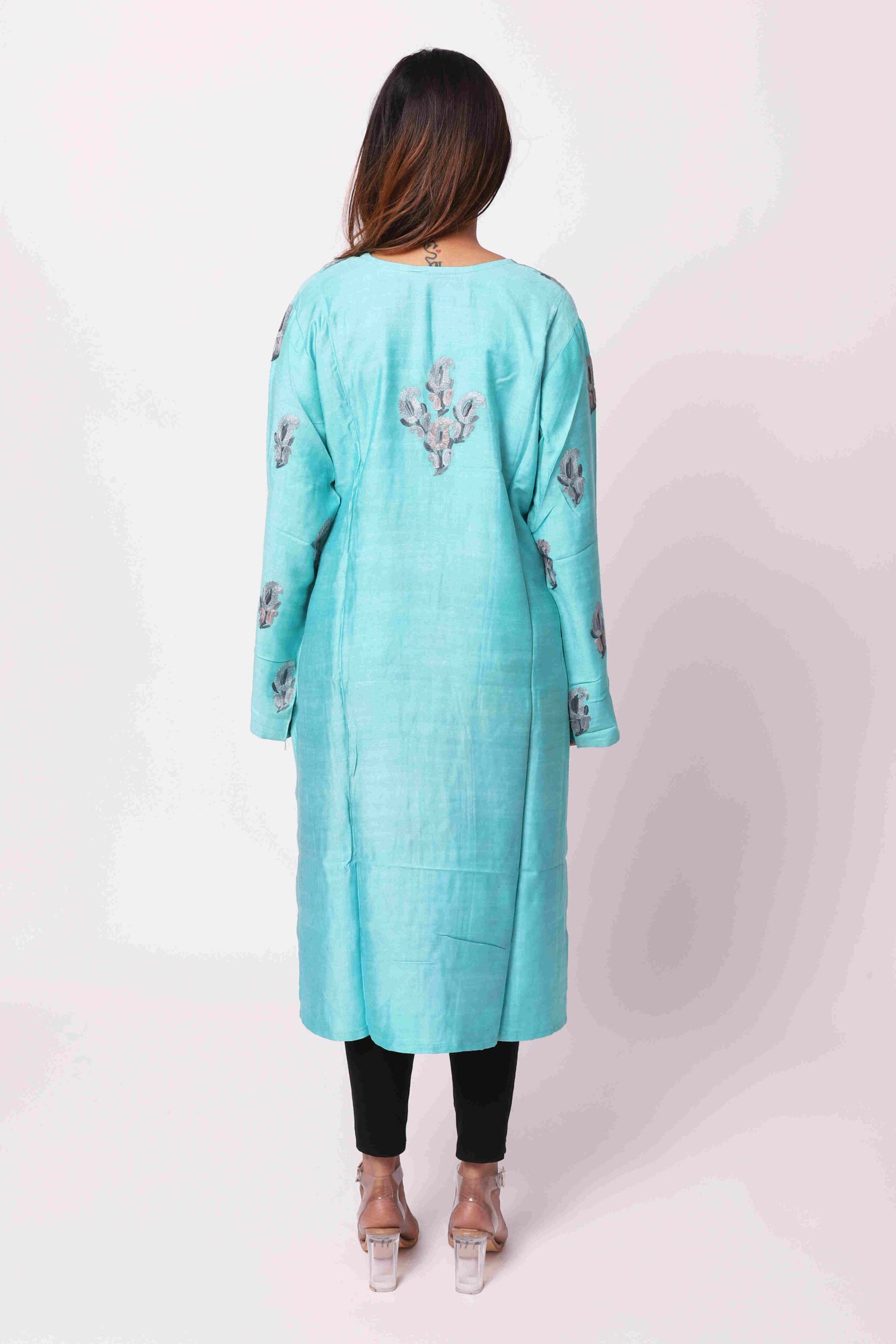 “Kurte Long Size With Aree Work On Gala, Seletes & Arm.