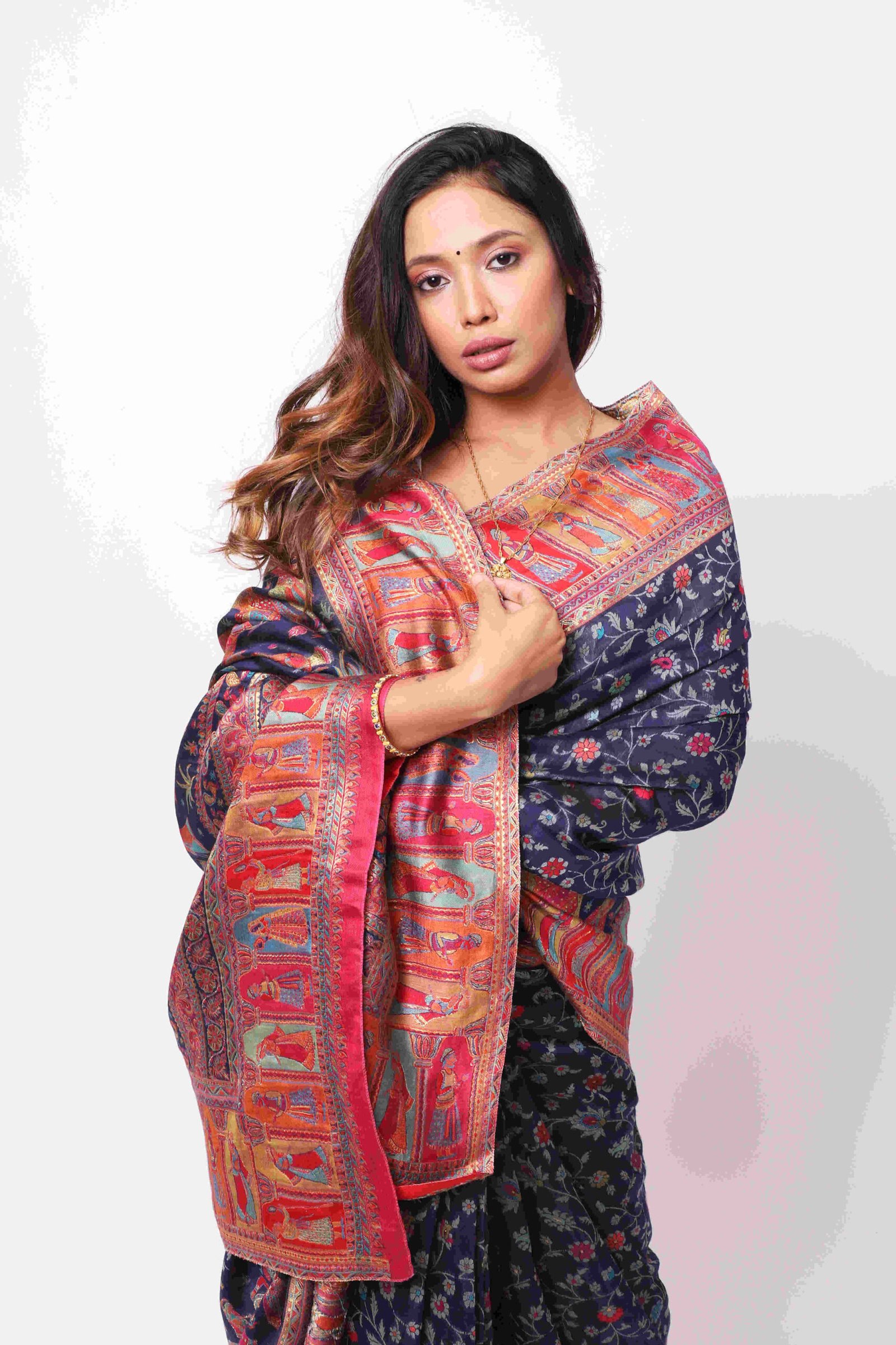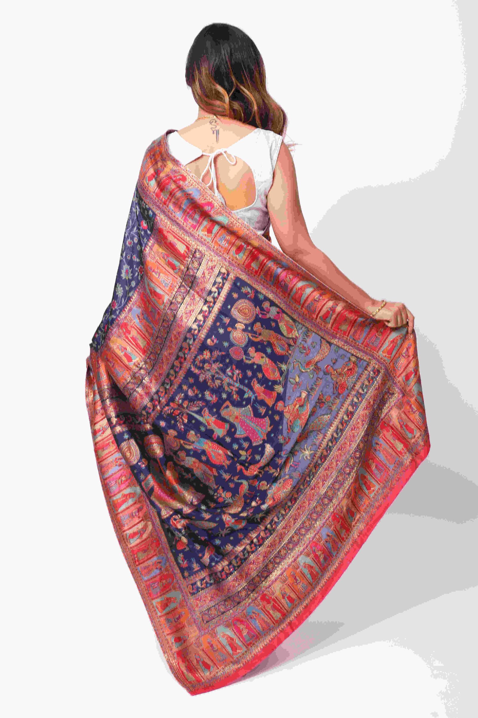 “Kanee Work Saree Crafted With Fine Kanee Art Showing The Best In Class Design Of Jaal And Border With Attached Blouse.