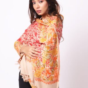 “Semi Pashmina Aree Work Stole With Fine Aree Jama Work Design All Over The Stole.